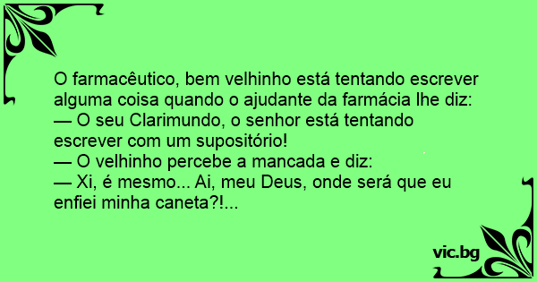 — O seu Clarimundo, o senhor está tentando escrever com um supositório!