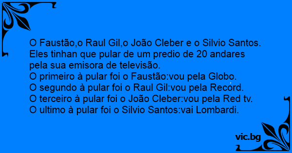 O Faustão,o Raul Gil,o João Cleber e o Silvio Santos. Eles tinhan que pular de um predio de 20 andares pela sua emisora de televisão.