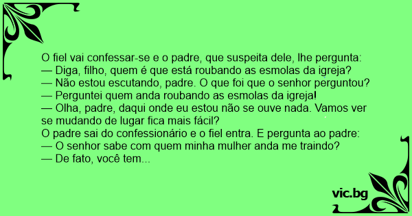 O fiel vai confessar-se e o padre, que suspeita dele, lhe pergunta: