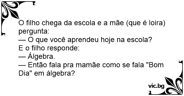 — Então fala pra mamãe como se fala "Bom Dia" em álgebra?
