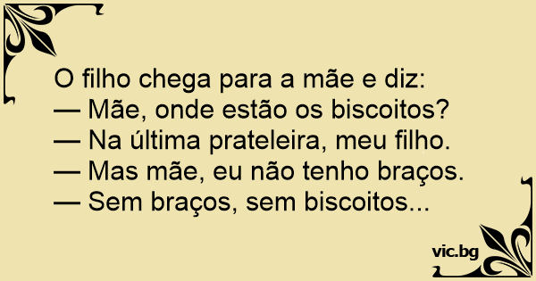— Mas mãe, eu não tenho braços.