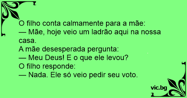 — Mãe, hoje veio um ladrão aqui na nossa casa.