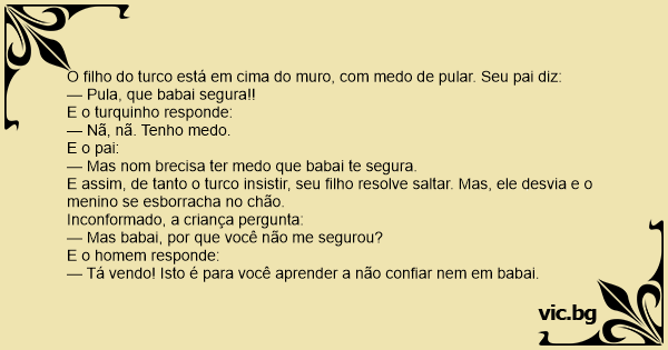 O filho do turco está em cima do muro, com medo de pular. Seu pai diz: