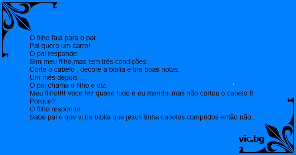 Sabe pai é que vi na biblia que jesus tinha cabelos compridos então não cortei.