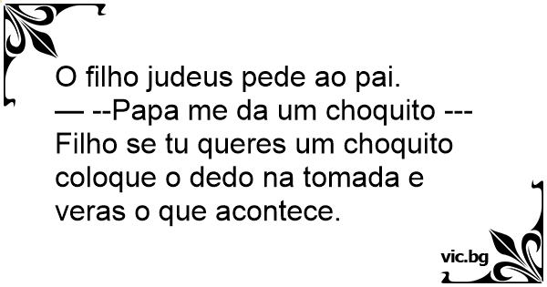 — --Papa me da um choquito ---Filho se tu queres um choquito coloque o dedo na tomada e veras o que acontece.