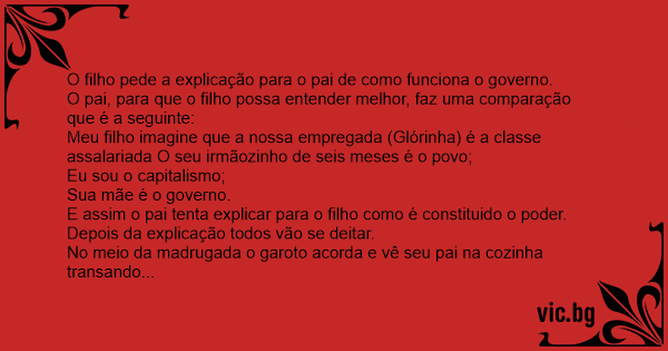 O filho pede a explicação para o pai de como funciona o governo.
