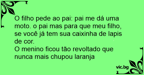 O filho pede ao pai: pai me dá uma moto. o pai mas para que meu filho, se você já tem sua caixinha de lapis de cor.
