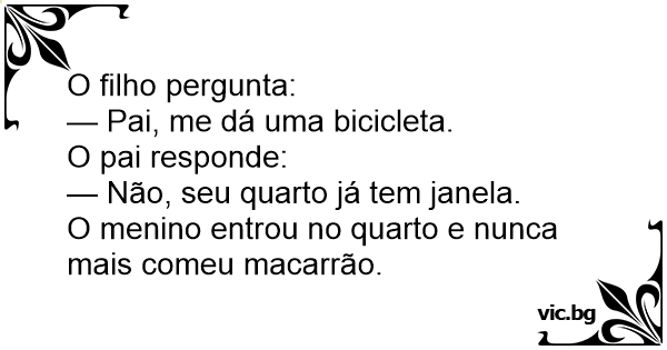 O menino entrou no quarto e nunca mais comeu macarrão.