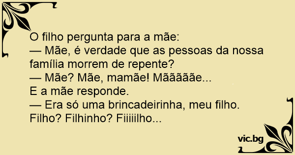— Mãe, é verdade que as pessoas da nossa família morrem de repente?