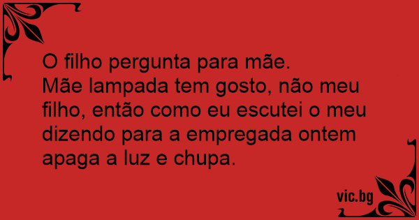Mãe lampada tem gosto, não meu filho, então como eu escutei o meu dizendo para a empregada ontem apaga a luz e chupa.