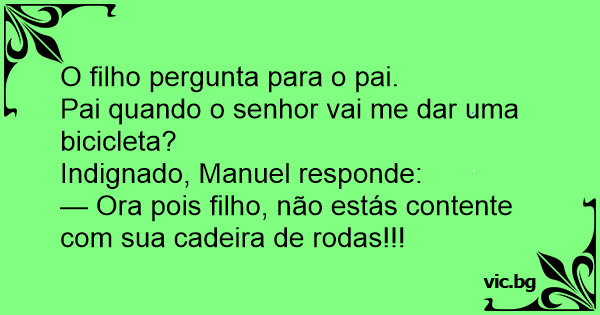 — Ora pois filho, não estás contente com sua cadeira de rodas!!!