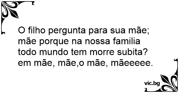 O filho pergunta para sua mãe; mãe porque na nossa familia todo mundo tem morre subita? em mãe, mãe,o mãe, mãeeeee.