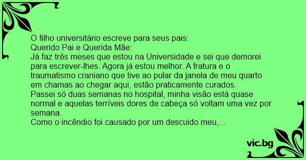 O filho universitário escreve para seus pais: