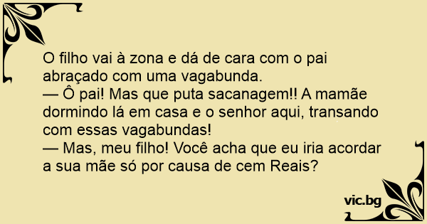 — Mas, meu filho! Você acha que eu iria acordar a sua mãe só por causa de cem Reais?