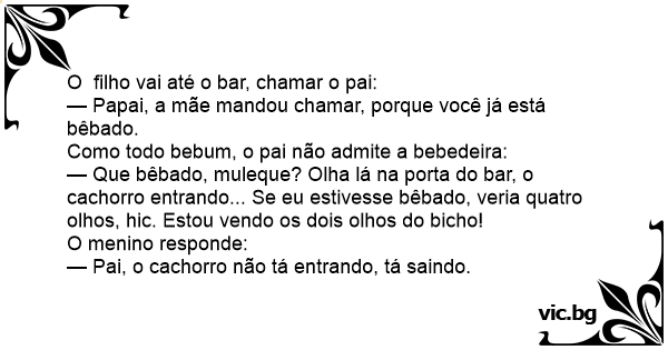 — Papai, a mãe mandou chamar, porque você já está bêbado.