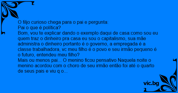 O filjo curioso chega para o pai e pergunta: