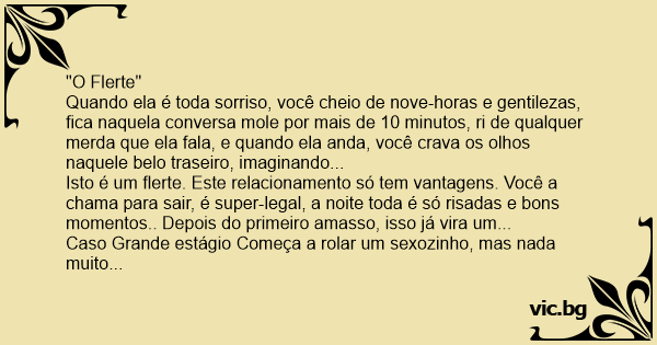 Quando ela é toda sorriso, você cheio de nove-horas e gentilezas, fiса naquela conversa mole por mais de 10 minutos, ri de qualquer меrdа que ela fala, e quando ela anda, você crava os olhos naquele belo traseiro, imaginando...