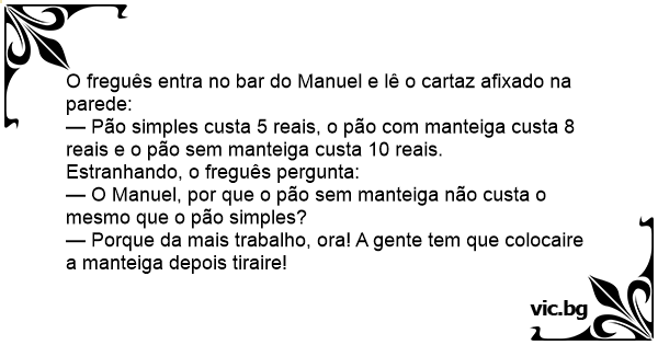 — O Manuel, por que o pão sem manteiga não custa o mesmo que o pão simples?