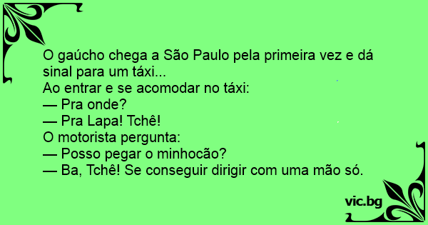 — Ba, Tchê! Se conseguir dirigir com uma mão só.