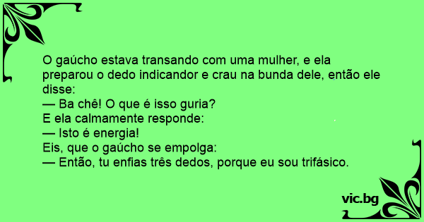 O gaúcho estava transando com uma mulher, e ela preparou o dedo indicandor e crau na bunda dele, então ele disse: