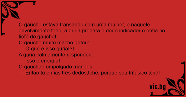 — Então tu enfias três dedos,tchê, porque sou trifásico tchê!