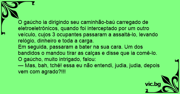 — Mas, bah, tchê! essa eu não entendi, judia, judia, depois vem com agrado?!!!