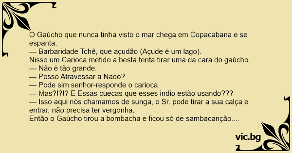 O Gaúcho que nunca tinha visto o mar chega em Copacabana e se espanta.