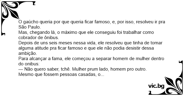 Mesmo que fossem pessoas casadas, o gaúcho não queria saber: