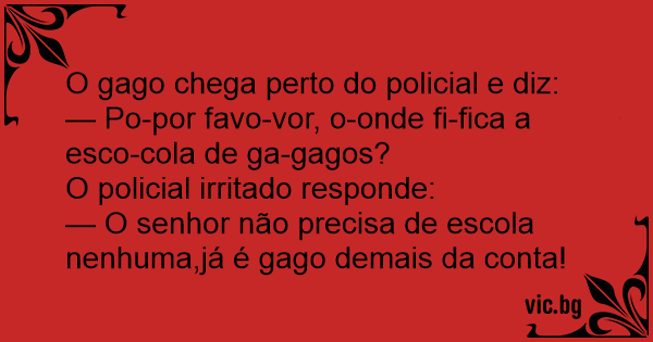 — Po-por favo-vor, o-onde fi-fiса a esco-cola de ga-gagos?