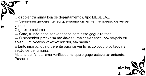 — Se-se-seu ge-gerente, eu que-queria um em-em-emprego de ve-ve-vendedor...