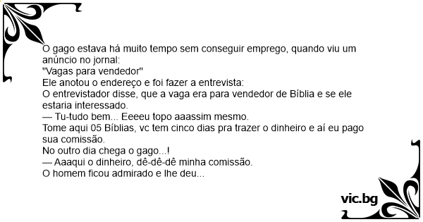 O gago estava há muito tempo sem conseguir emprego, quando viu um anúncio no jornal: