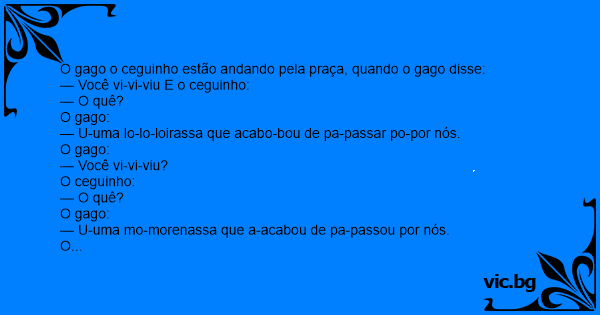 O gago o ceguinho estão andando pela praça, quando o gago disse: