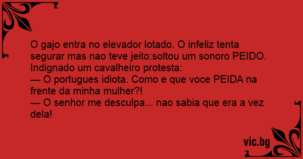 O gajo entra no elevador lotado. O infeliz tenta segurar mas nao teve jeito:soltou um sonoro РЕIDО.