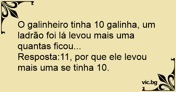 O galinheiro tinha 10 gаlinhа, um ladrão foi lá levou mais uma quantas ficou...