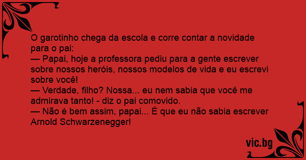 — Não é bem assim, papai... É que eu não sabia escrever Arnold Schwarzenegger!
