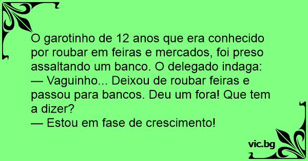 — Vaguinho... Deixou de roubar feiras e passou para bancos. Deu um fora! Que tem a dizer?