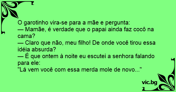 — Mamãe, é verdade que o papai ainda faz cocô na cama?