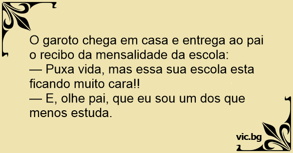 — Puxa vida, mas essa sua escola esta ficando muito cara!!