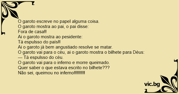O garoto vai para o céu, ai o garoto mostra o bilhete para Déus: