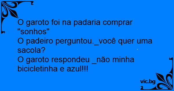 O garoto respondeu _não minha bicicletinha e azul!!!