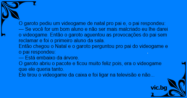 Então chegou o Natal e o garoto perguntou pro pai do videogame e o pai respondeu: