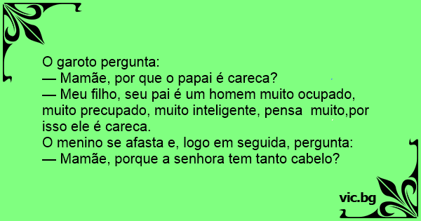 — Meu filho, seu pai é um homem muito ocupado, muito precupado, muito inteligente, pensa muito,por isso ele é careca.
