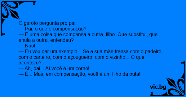 — É... Mas, em compensação, você é um filho da рuта!