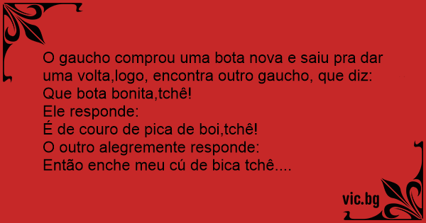 O gaucho comprou uma bota nova e saiu pra dar uma volta,logo, encontra outro gaucho, que diz: