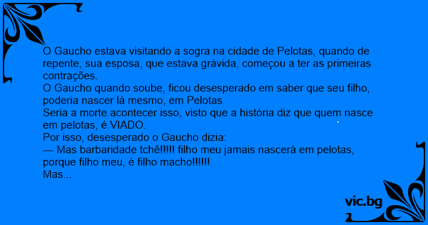 — Mas barbaridade tchê!!!!! filho meu jamais nascerá em реlотаs, porque filho meu, é filho macho!!!!!!