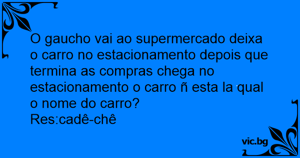 O gaucho vai ao supermercado deixa o carro no estacionamento depois que termina as compras chega no estacionamento o carro ñ esta la qual o nome do carro?
