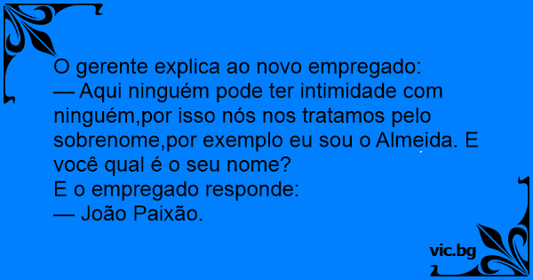 — Aqui ninguém pode ter intimidade com ninguém,por isso nós nos tratamos pelo sobrenome,por exemplo eu sou o Almeida. E você qual é o seu nome?