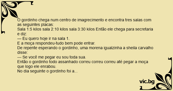 No dia seguinte o gordinho, quis ir a sala 3 mas a secretaria perguntou: