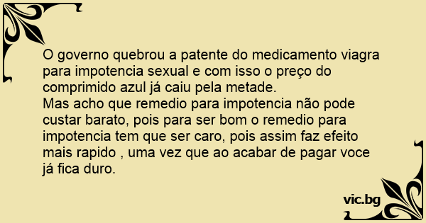 O governo quebrou a patente do medicamento viаgrа para impotencia sеxuаl e com isso o preço do comprimido azul já caiu pela metade.