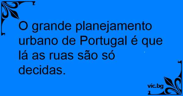 O grande planejamento urbano de Portugal é que lá as ruas são só decidas.